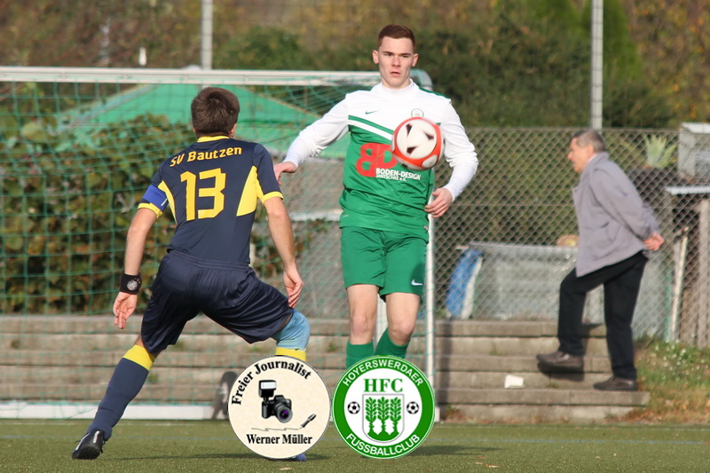 [WM] Die Hoyerswerdaer übernahmen von Anfang an das Spielgeschehen auf dem Platz und es entwickelten sich reichlich Torchancen für den HFC. Bis zur 25. Minute gab es schon 7 hundertprozentige Chancen, die leider nicht in Zählbares verwandelt wurden. Ab der 25. Minut7e verflachte das Spiel zusehends. Hoyerswerda blieb zwar dominant, aber ohne zu glänzen. In der 30. Minute gab es eine Riesenchance für Bautzen. Der Bautzener Stürmer war vor dem Hoyerswerdaer Tor allein, aber der Ball ging über das Tor. In der zweiten Halbzeit blieb Hoyerswerda weiter spielbestimmend. Endlich in der 55. Minute schaffte es Paul Hausding nach Vorarbeit von Kevin mit dem 1:0 Hoyerswerda in Führung zu schießen. Nun gelangen auch die Spielzüge der Hoyerswerdaer besser. In der 61.Minute arbeitete sich Nico Kubaink durch die Bautzener Hintermannschaft und schoss zum 2:0 ein. In der 85. Minute kam es zum Kopfball von Paul Hausding, der auf Nico Kubaink schoss. Kubaink verwandelt sicher zum 3:0 für die Hausherren. In der 92. Minute gelang Paul Hausding mit Fernschuss das 4:0 zum Sieg der Hoyerswerdaer.
