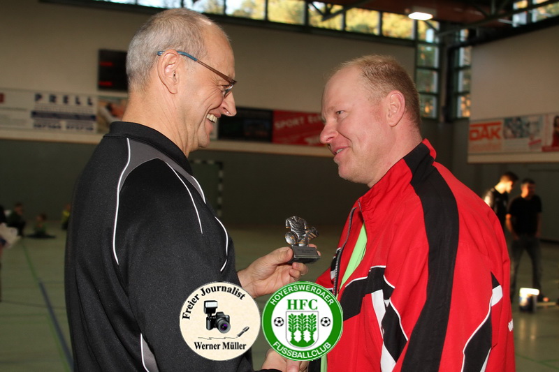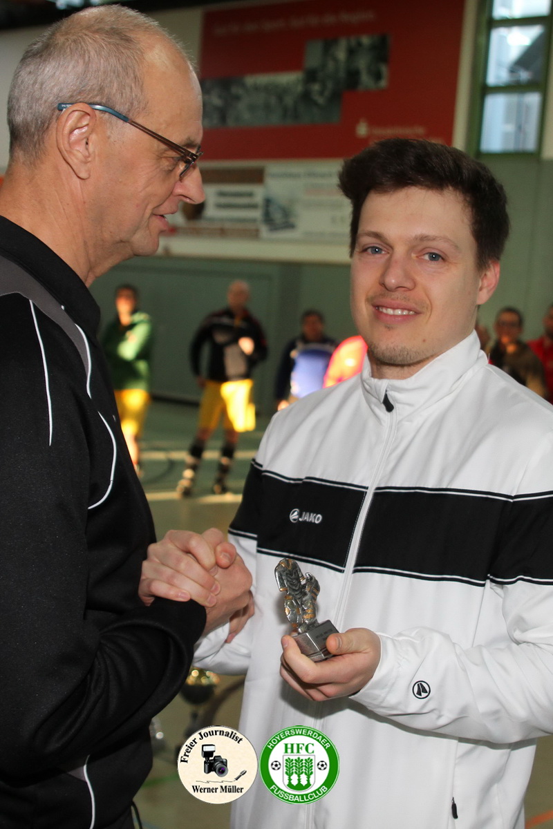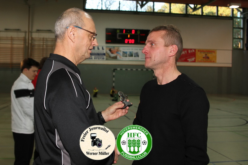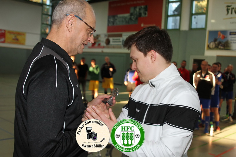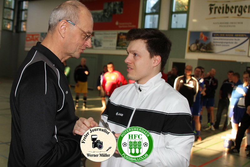 [WM] Am Sonntag, den 03.12.2017 wurden in der Sporthalle des BSZ Konrad Zuse ab 10:00 Uhr die Hallenkreismeisterschaften Altherren Ü35 ausgetragen. Am Start waren 7 Teams, denn der Königswarthaer SV hatte kurzfristig abgesagt. Die Mannschaften vom HFC (Aufbau), HFC (Aktivist), HFC (Einheit), DJK Blau-Weiß Wittichenau, ESV Lok Hoyerswerda, DJK Sokol Ralbitz/Horka und SpG SpVgg. Knappensee/SV Zeißig spielten von 10:00-14:30Uhr im Spielmodus „Jeder gegen Jeden“ je Spiel mit einer Spielzeit 1 x 10 Minuten. Nach 21 Spielen standen Sieger und Platzierte fest. Im Herbst besiegte DJK Blau Weiß Wittichenau noch im Finalspiel HFC Aufbau bei der Meisterschaft. Seit Sonntag heißt der neue Hallen-Kreismeister Ü35 „HFC Aufbau“ die den Vorjahresmeister DJK Blau Weiß Wittichenau die Siegestrophäe abjagten.