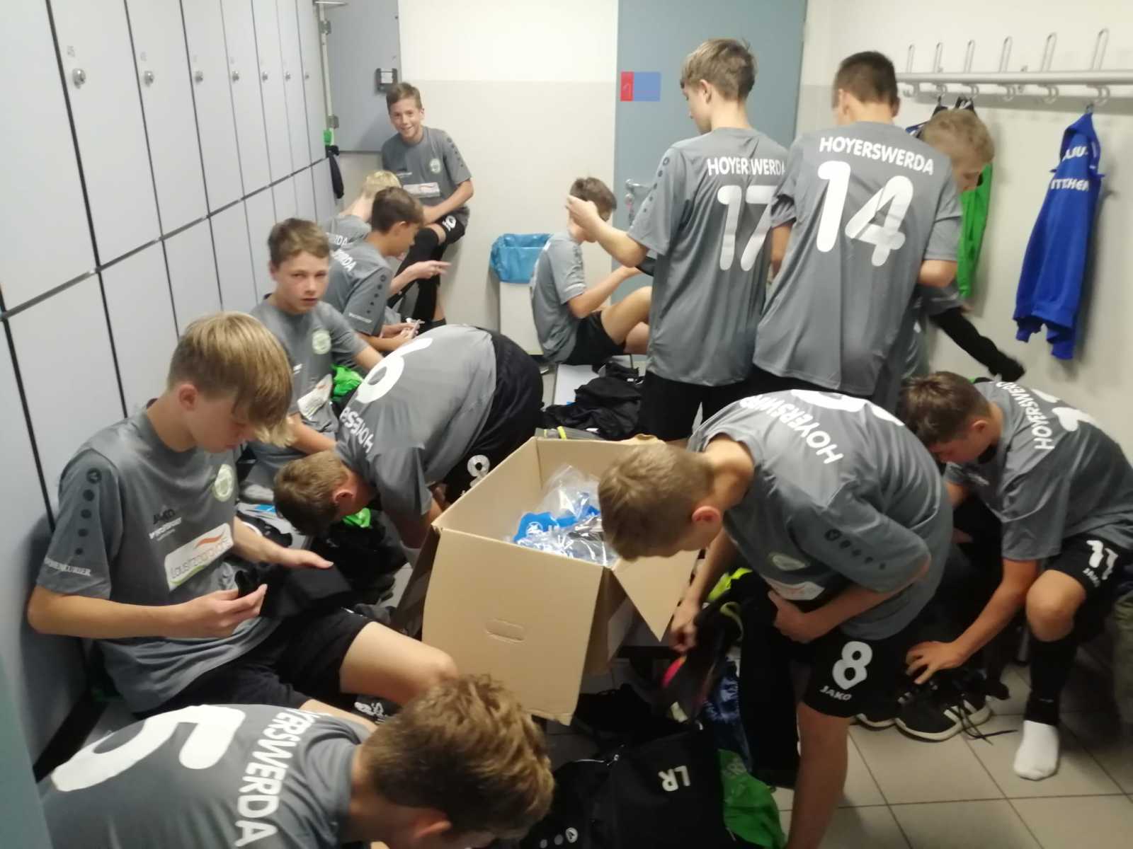 Die Spieler der C-Junioren des Hoyerswerdaer Fußballclub e. V. bekamen am Samstag, den 18.09.2021 vor dem Spiel in der Landesklasse gegen den FC Oberlausitz/Neugersdorf Besuch von einem neuen Sponsor des HFC.