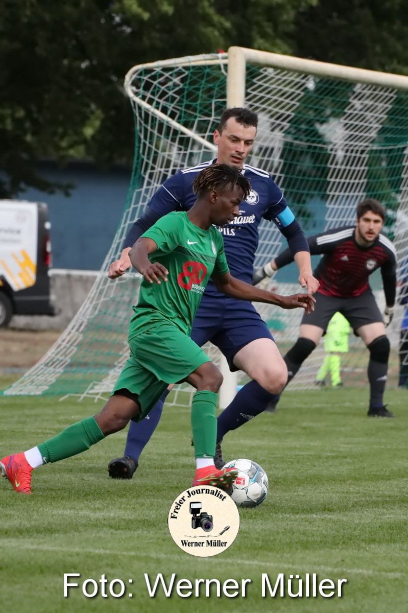 2022-05-28 Hoyerswerdaer FC in grün DJK Blau Weiß Wittichenau in blau 7:0 (3:0) Foto Werner Müller
