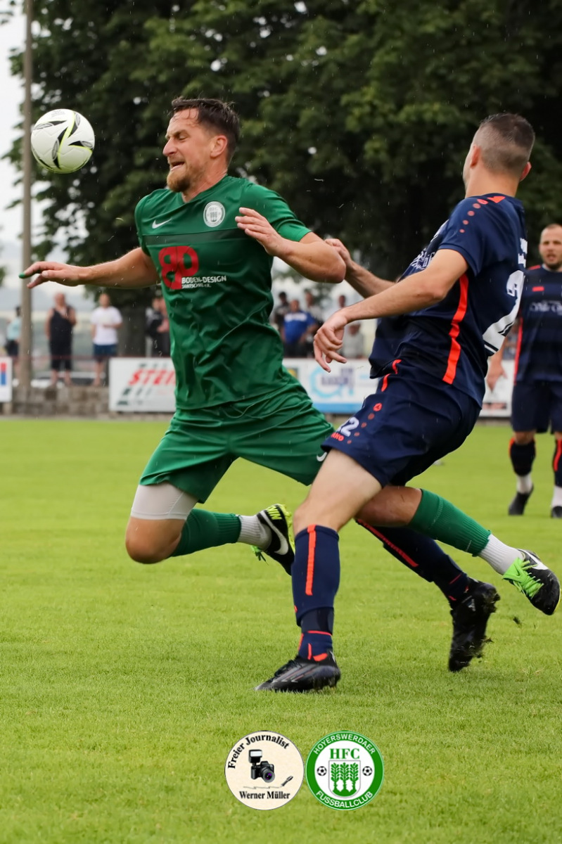 2022-06-25 Pokale Westlausigtzer Fußballverband SV Aufbau Deutschbaselitz kin dunkelblau - Hoyerswerdaer FC in grün 0:0 nach Verlängerung 0:0 nach Elfmeterschießen 3:4 und Hoyerswerda siegte Foto: Werner Müller