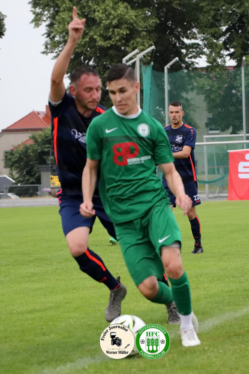 2022-06-25 Pokale Westlausigtzer Fußballverband SV Aufbau Deutschbaselitz kin dunkelblau - Hoyerswerdaer FC in grün 0:0 nach Verlängerung 0:0 nach Elfmeterschießen 3:4 und Hoyerswerda siegte Foto: Werner Müller