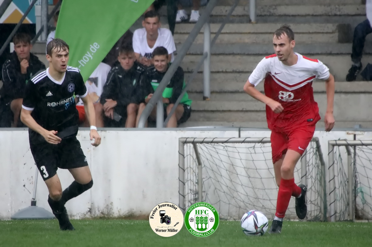 Die Unzufriedenheit über das Ergebnis war unverkennbar in den Gesichtern der HFC-Spieler nach Schlusspfiff abzulesen. „Wir hatten uns mehr vorgenommen, es war in jedem Fall mehr möglich, am Ende müssen wir mit dem Punkt leben“ , so Co-Trainer Oliver Göschick. Die Gastgeber zeigten vor 86 zahlenden Zuschauern im strömenden Regen die bessere Spielanlage und waren über 90 Minuten das aktivere und spielbestimmende Team. Das Führungstor war fußballerische Feinkost. Über zehn Stationen kombinierte sich der Aufsteiger aus der Abwehr im Kurzpassspiel über die linke Seite bis in den Gästestrafraum durch und Bruno Laser behielt völlig freistehend vor dem Gästetor die Übersicht und köpfte zum Führungstor ein.  „Leider haben wir durch meinen individuellen Fehler  im Spielaufbau Weißwasser sofort zurück ins Spiel gebracht“, ärgerte sich Kapitän Christopher Heinze am meisten über sich und den Moment, der zum Gegentor führte. Die Gäste, ausschließlich, abwartend und meist tief stehend,  spekulierten genau auf solche Situationen. So vereitelte Torhüter Dominik Krüger vor und nach der Pause (27.,52.) mit zwei tollen Paraden mögliche Gegentore. „Der Gegner muss nichts investieren, um zu Toren und Torchancen zu kommen“, kritisierte Trainer Stefan Hoßmang, um festzustellen, „dass wir in jeder Situation absolut konzentriert sein müssen.“  Sein Kollege Philipp Goltzsch attestierte nach Ende „dass Hoyerswerda heute klar das bessere Team war“. Der Heimsieg blieb allerdings aus, „da wir unsere sehr guten Chancen und Möglichkeiten nicht nutzen konnten (u.a. 12. Liebe, 33. Liebe, 41. Sow, 47. Sow, 48. Breuning, 68. Meinel )“, stellte Benjamin Hoßmang klar. Zum Glück vergab VfB-Kapitän Axel Buder (70.) nach missglückter Abwehr von Silvio Liebe die Siegchance für die Gäste.