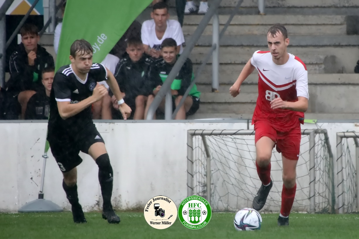Die Unzufriedenheit über das Ergebnis war unverkennbar in den Gesichtern der HFC-Spieler nach Schlusspfiff abzulesen. „Wir hatten uns mehr vorgenommen, es war in jedem Fall mehr möglich, am Ende müssen wir mit dem Punkt leben“ , so Co-Trainer Oliver Göschick. Die Gastgeber zeigten vor 86 zahlenden Zuschauern im strömenden Regen die bessere Spielanlage und waren über 90 Minuten das aktivere und spielbestimmende Team. Das Führungstor war fußballerische Feinkost. Über zehn Stationen kombinierte sich der Aufsteiger aus der Abwehr im Kurzpassspiel über die linke Seite bis in den Gästestrafraum durch und Bruno Laser behielt völlig freistehend vor dem Gästetor die Übersicht und köpfte zum Führungstor ein.  „Leider haben wir durch meinen individuellen Fehler  im Spielaufbau Weißwasser sofort zurück ins Spiel gebracht“, ärgerte sich Kapitän Christopher Heinze am meisten über sich und den Moment, der zum Gegentor führte. Die Gäste, ausschließlich, abwartend und meist tief stehend,  spekulierten genau auf solche Situationen. So vereitelte Torhüter Dominik Krüger vor und nach der Pause (27.,52.) mit zwei tollen Paraden mögliche Gegentore. „Der Gegner muss nichts investieren, um zu Toren und Torchancen zu kommen“, kritisierte Trainer Stefan Hoßmang, um festzustellen, „dass wir in jeder Situation absolut konzentriert sein müssen.“  Sein Kollege Philipp Goltzsch attestierte nach Ende „dass Hoyerswerda heute klar das bessere Team war“. Der Heimsieg blieb allerdings aus, „da wir unsere sehr guten Chancen und Möglichkeiten nicht nutzen konnten (u.a. 12. Liebe, 33. Liebe, 41. Sow, 47. Sow, 48. Breuning, 68. Meinel )“, stellte Benjamin Hoßmang klar. Zum Glück vergab VfB-Kapitän Axel Buder (70.) nach missglückter Abwehr von Silvio Liebe die Siegchance für die Gäste.