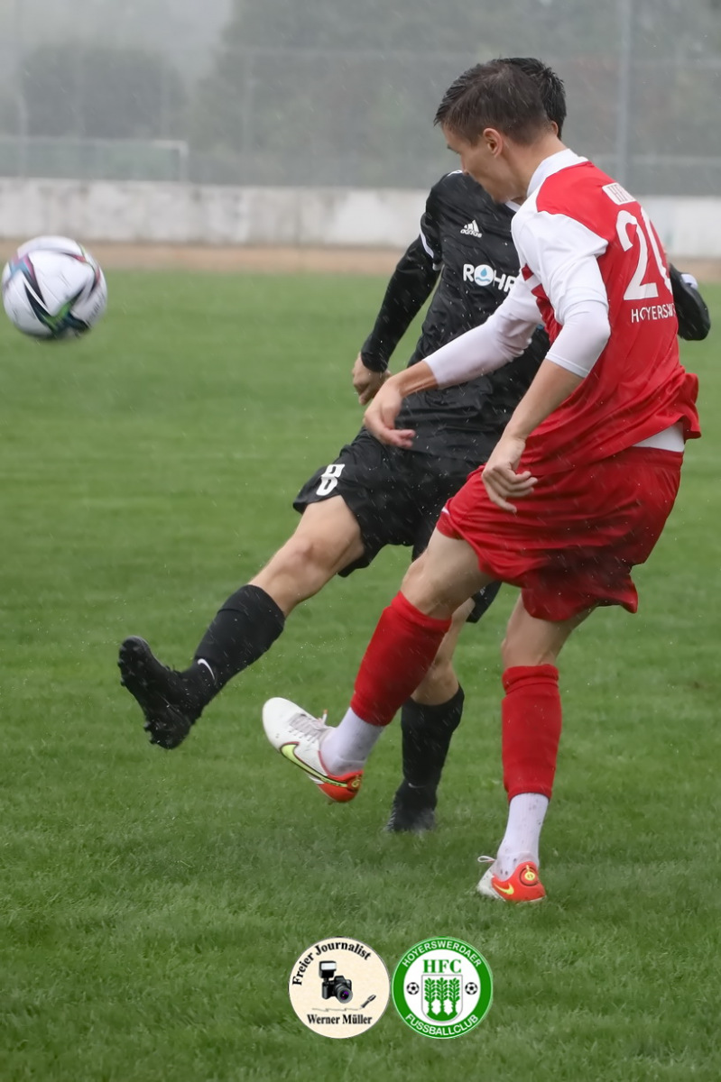 Die Unzufriedenheit über das Ergebnis war unverkennbar in den Gesichtern der HFC-Spieler nach Schlusspfiff abzulesen. „Wir hatten uns mehr vorgenommen, es war in jedem Fall mehr möglich, am Ende müssen wir mit dem Punkt leben“ , so Co-Trainer Oliver Göschick. Die Gastgeber zeigten vor 86 zahlenden Zuschauern im strömenden Regen die bessere Spielanlage und waren über 90 Minuten das aktivere und spielbestimmende Team. Das Führungstor war fußballerische Feinkost. Über zehn Stationen kombinierte sich der Aufsteiger aus der Abwehr im Kurzpassspiel über die linke Seite bis in den Gästestrafraum durch und Bruno Laser behielt völlig freistehend vor dem Gästetor die Übersicht und köpfte zum Führungstor ein.  „Leider haben wir durch meinen individuellen Fehler  im Spielaufbau Weißwasser sofort zurück ins Spiel gebracht“, ärgerte sich Kapitän Christopher Heinze am meisten über sich und den Moment, der zum Gegentor führte. Die Gäste, ausschließlich, abwartend und meist tief stehend,  spekulierten genau auf solche Situationen. So vereitelte Torhüter Dominik Krüger vor und nach der Pause (27.,52.) mit zwei tollen Paraden mögliche Gegentore. „Der Gegner muss nichts investieren, um zu Toren und Torchancen zu kommen“, kritisierte Trainer Stefan Hoßmang, um festzustellen, „dass wir in jeder Situation absolut konzentriert sein müssen.“  Sein Kollege Philipp Goltzsch attestierte nach Ende „dass Hoyerswerda heute klar das bessere Team war“. Der Heimsieg blieb allerdings aus, „da wir unsere sehr guten Chancen und Möglichkeiten nicht nutzen konnten (u.a. 12. Liebe, 33. Liebe, 41. Sow, 47. Sow, 48. Breuning, 68. Meinel )“, stellte Benjamin Hoßmang klar. Zum Glück vergab VfB-Kapitän Axel Buder (70.) nach missglückter Abwehr von Silvio Liebe die Siegchance für die Gäste.