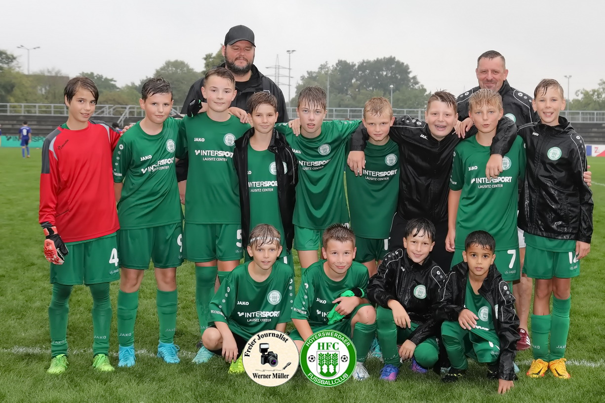 Aufgrund von kurzfristigen Erkrankungen und den widrigen Wetterbedingungen wurde dieses mal eine etwas kleinere aber nicht minderwertige Runde ausgespielt. So traten unsere Sportsfreunde der SG Weixdorf, DJK Blau-Weiß Wittichenau und SG Blau-Weiß Klein Gaglow sowie der heimischen HFC D-Jugend um Spielmodus jeder gegen jeden an. Es wurde gepasst, geschossen, gekämpft und gezaubert und die Trainer sowie Zuschauer konnten ein fußballerisches hochwertiges Turnier beobachten. Am Ende setzten sich die Kids aus Weißdorn verdient und durchgenässt als Turniersieger durch und holten sich den Pokal, aber jeder Spieler verdiente sich eine Medaille und bekam somit eine durch unseren Oberbürgermeister verliehen.