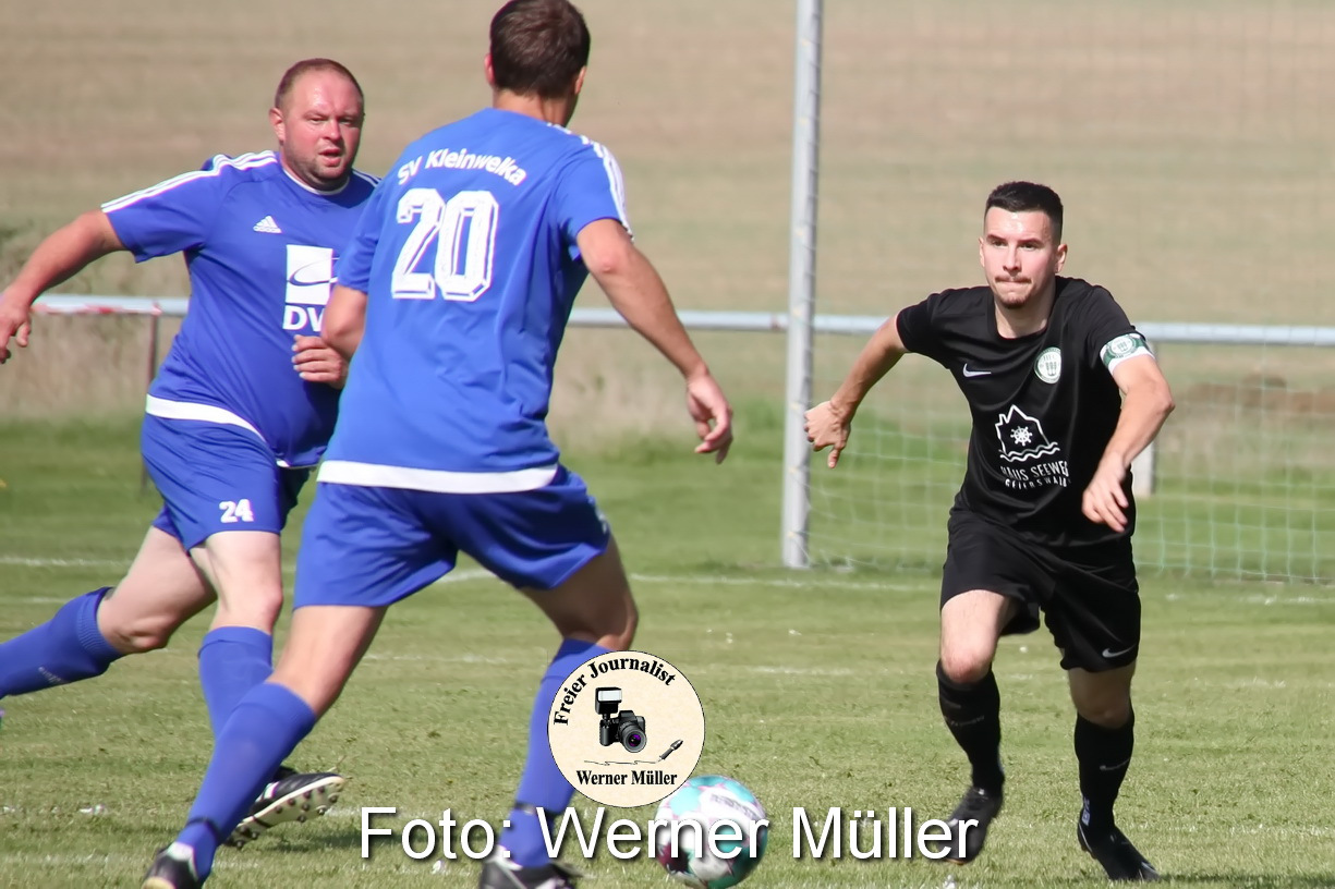 2022-09-25 Pokalspiel SV Kleinwelka in blau - Hoyerswerdaer FC II in schwarz Foto: Werner Müller