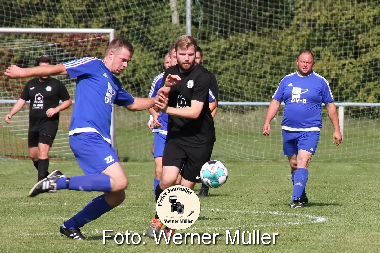 2022-09-25 Pokalspiel SV Kleinwelka in blau - Hoyerswerdaer FC II in schwarz Foto: Werner Müller