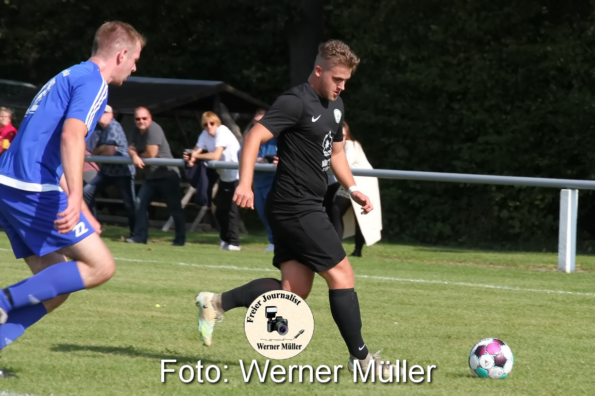 2022-09-25 Pokalspiel SV Kleinwelka in blau - Hoyerswerdaer FC II in schwarz Foto: Werner Müller