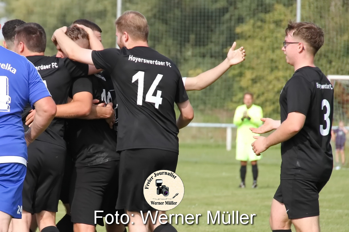 2022-09-25 Pokalspiel SV Kleinwelka in blau - Hoyerswerdaer FC II in schwarz Foto: Werner Müller
