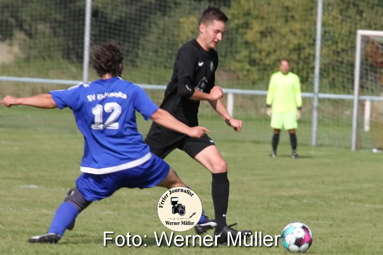 2022-09-25 Pokalspiel SV Kleinwelka in blau - Hoyerswerdaer FC II in schwarz Foto: Werner Müller