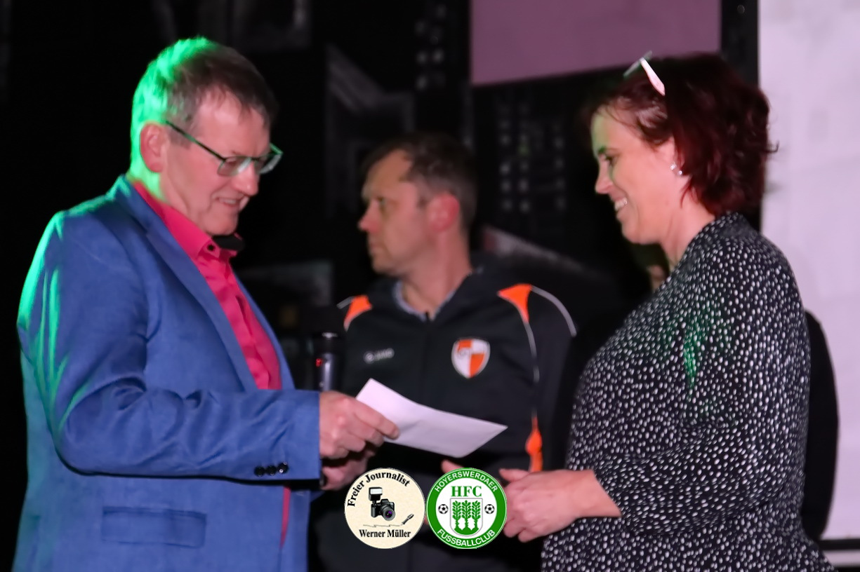 Susi Bierholdt – Nachwuchsbetreuung G-Jugend , Uwe Reichelt – Betreuer HFC II – und Andreas Röthig – Helfer und Sponsor erhielten die Ehrennadel in Bronze.