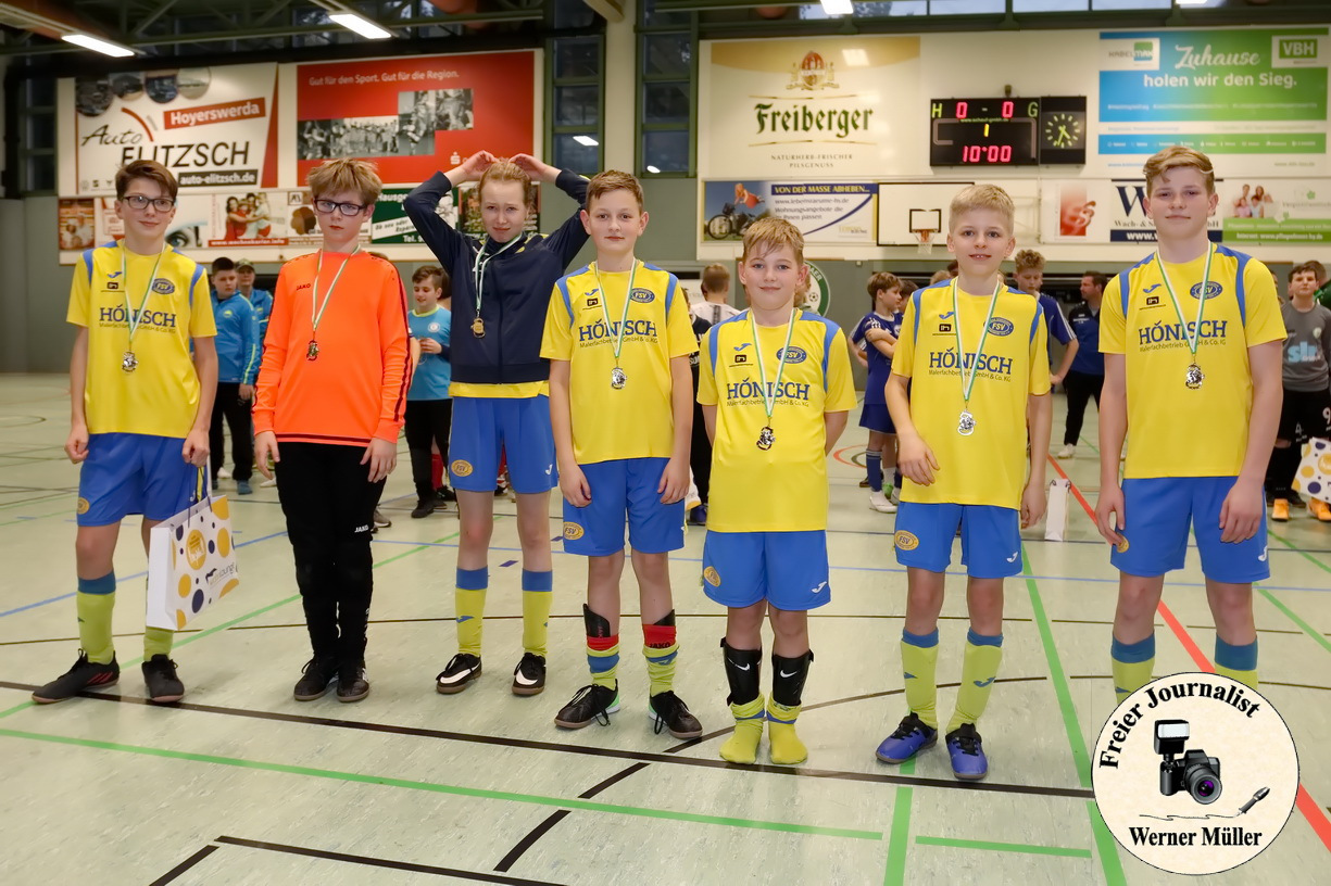 In einer stets gut gefüllten Halle konnten die Kids im Alter von 5 bis 13 Jahren zeigen, was sie bisher im Training erlernt haben. Nach vielen tollen und rassigen Spielen, welche in den K.O.-Phasen nur durch ein Entscheidungsschießen einen Sieger hervor brachten, setzen sich am Ende die Teams vom Königswarthaer SV bei den G-Junioren, SV Einheit Kamenz in den D-Junioren, FC Lauchhammer beim F-Junioren Turnier sowie BSW Lausitz in den E-Junioren durch und somit konnten den Siegerpokal nach oben reißen. Aber auch traditionell gab es beim jedem Turnier ein All-Star-Team, bestehend aus einem Spieler jeder Mannschaft, es wurde fußballerisch höchstes Niveau von den Kids gezeigt und alle wollen wir nächstes Jahr wieder sehen.