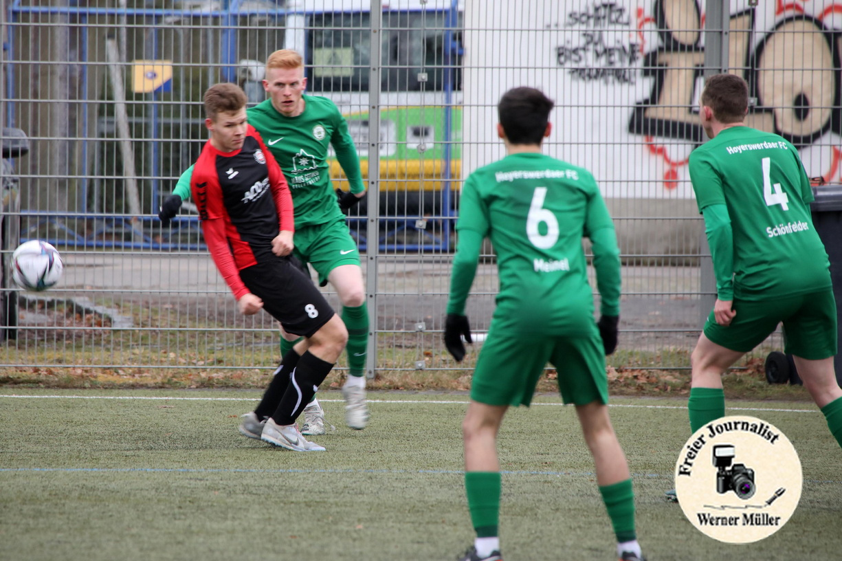 2023-03-04 Hoyerswerdaer FC I in grün - FV Eintracht Niesky in rot 0:2 (0:0) Fopto: Werner Müller