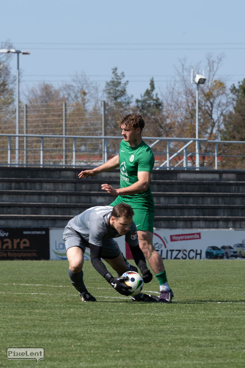 Nach einem eigenen Freistoß stimmte die Absicherung im Hoyerswerdaer Rückraum überhaupt nicht. Striesen schaltete blitzschnell um und überrumpelte die unsortierte HFC-Defensive. Die Situation gipfelte in einem Elfmeterpfifg, den die Gäste eiskalt zur Führung nutzten.