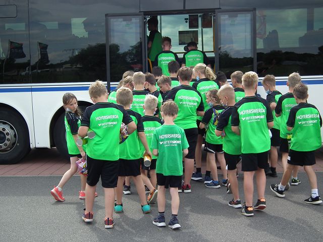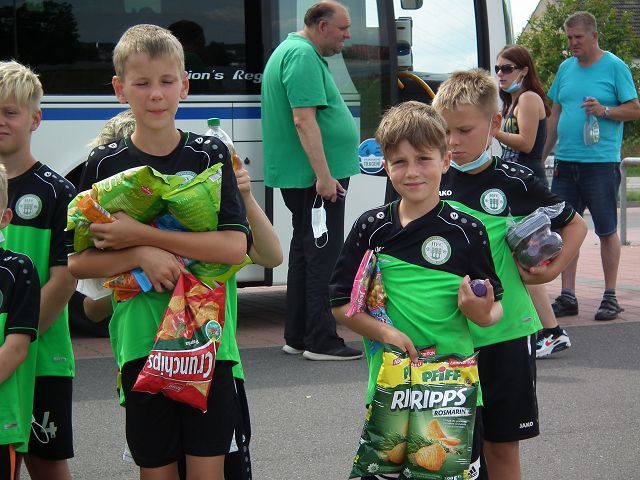 Pünktlich um 7:00 Uhr haben wir uns aus den Betten gequält. Es musste früh alles ein wenig schneller gehen, da wir den Tag voll durchgeplant haben. Zuerst haben wir uns mal um die lebenden Dosen der Kinder gekümmert. Bei einigen haben wir schon gedacht der Inhalt würde mit uns sprechen, naja, auch das haben wir überstanden. Danach natürlich Frühstück (hier gab es auch frisches Obst), diesmal gleich in Vereinskleidung, damit wir sofort zum Bus konnten. Erster Termin war um 10:00 Uhr Parkplatz Schiffshebewerk Niederfinow. Wir hatten telefonisch die Bootstour durch das Hebewerk für 11:00 Uhr gebucht. Fast pünktlich angekommen (10:20 Uhr) war Herr Gutewort sofort an der Kasse zum bezahlen und dann mit den Kids und den anderen Erwachsenen unterwegs zum Anleger. Herr Großmann und Herr Hering hatten erstmal an den Imbissständen zu tun, um schon das Mittagessen für etwa 12:30 Uhr zu ordern. Bis dahin hat also alles funktioniert. Alle pünktlich auf dem Schiff und dann ging es auch schon los. Ist schon ein etwas komisches Gefühl, wenn es etwa 40 Meter in die Höhe geht. Bei einigen Kindern wurden die Augen immer größer. Das lag aber nicht an Angst, sondern war eher ein großes Staunen. Oben angelangt dreht dann das Boot auf dem Kanal und schon geht es wieder abwärts. Es gab Kinder, welche sogar kleine Krokodile gesehen haben wollen. Wir wissen nicht genau, ob dass so stimmt. Als wir hingeschaut haben waren sie schon wieder abgetaucht. Am Ende haben wir alles gut überstanden. Wieder am Steg angekommen folgte ein kurzer Fußmarsch zum Essen. Alle Kinder wurden satt, was es gab seht ihr ja auf den Fotos. Danach noch für alle ein Eis. Beide Dinge sind mit 40 Personen schon eine kleine Herausforderung, aber unsere Betreuer haben alle Situationen voll im Griff. Nun wieder zum Bus und auf zur nächsten Station.