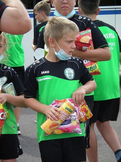 Nächster Halt – Norma. Hier durften alle in einem bestimmten Wert einkaufen. „Jetzt müssen wir auch noch rechnen“, aber auch das haben alle überstanden. Ist schon manchmal bissl blöd, was die Trainer von den Kindern verlangen und das auch noch in den Ferien. Nun waren alle Kinder glücklich, wie man ja auf den Bilder sehen kann. Die Stimmung sank etwas als der Trainer festlegte, die Tüten bleiben zu. Und beim Trainer sank die Stimmung als er merkte, dass im Norma Trinken für die Kinder vergessen wurde. Hieß nun, wir brauchen wieder irgendwo einen Einkaufsladen und das obwohl die Zeit schon recht doll voran geschritten war, da wir für 16 Uhr den Kletterwald gebucht hatten.
