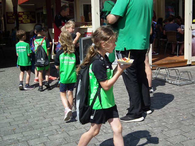 Nächster Halt – Norma. Hier durften alle in einem bestimmten Wert einkaufen. „Jetzt müssen wir auch noch rechnen“, aber auch das haben alle überstanden. Ist schon manchmal bissl blöd, was die Trainer von den Kindern verlangen und das auch noch in den Ferien. Nun waren alle Kinder glücklich, wie man ja auf den Bilder sehen kann. Die Stimmung sank etwas als der Trainer festlegte, die Tüten bleiben zu. Und beim Trainer sank die Stimmung als er merkte, dass im Norma Trinken für die Kinder vergessen wurde. Hieß nun, wir brauchen wieder irgendwo einen Einkaufsladen und das obwohl die Zeit schon recht doll voran geschritten war, da wir für 16 Uhr den Kletterwald gebucht hatten.