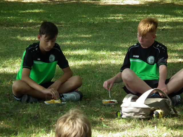 Nächster Halt – Norma. Hier durften alle in einem bestimmten Wert einkaufen. „Jetzt müssen wir auch noch rechnen“, aber auch das haben alle überstanden. Ist schon manchmal bissl blöd, was die Trainer von den Kindern verlangen und das auch noch in den Ferien. Nun waren alle Kinder glücklich, wie man ja auf den Bilder sehen kann. Die Stimmung sank etwas als der Trainer festlegte, die Tüten bleiben zu. Und beim Trainer sank die Stimmung als er merkte, dass im Norma Trinken für die Kinder vergessen wurde. Hieß nun, wir brauchen wieder irgendwo einen Einkaufsladen und das obwohl die Zeit schon recht doll voran geschritten war, da wir für 16 Uhr den Kletterwald gebucht hatten.
