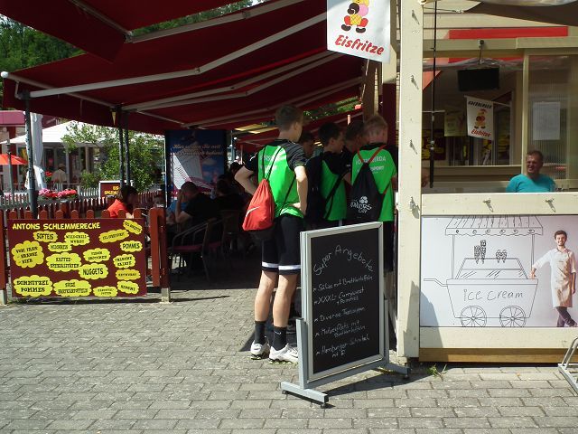 Auf nach Wandlitz, zum vierten Mal zu unserem quasi Stamm Döner! Auch hier gab es wieder Wahlessen – aber diesmal mit echter Auswahl, nix mit Käse oder ohne Käse. Die Laune besserte sich von Minute zu Minute. Richtig gut wurde es, als alle satt waren und Herr Gutewort mit der Büchse Lollies um die Ecke kam. Nun zum Bus und endlich Rückfahrt. 21:30 im Objekt. Wer nun dachte, alle wären kaputt, hatte sich schwer geirrt. Nun ging es erstmal an den Strand und zum Bolzen. Wann dann endlich Schluss war wollt ihr gar nicht wissen.