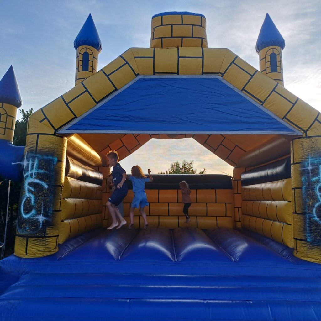 | Hüpfburg (ohne Anlieferung/Abholung und ohne Auf- und Abbau) | Fr. – Mo. | 90,00 | 153,00 | 180,00 | Anlieferung: 50,00 € (Umkreis 10 km) Auf- und Abbau: 50,00 € Kaution: 150,00 € |