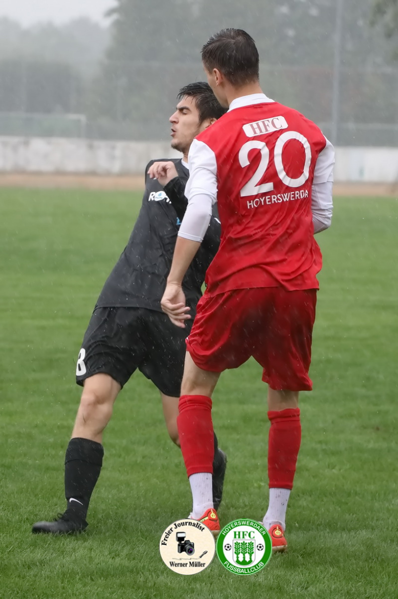 Die Unzufriedenheit über das Ergebnis war unverkennbar in den Gesichtern der HFC-Spieler nach Schlusspfiff abzulesen. „Wir hatten uns mehr vorgenommen, es war in jedem Fall mehr möglich, am Ende müssen wir mit dem Punkt leben“ , so Co-Trainer Oliver Göschick. Die Gastgeber zeigten vor 86 zahlenden Zuschauern im strömenden Regen die bessere Spielanlage und waren über 90 Minuten das aktivere und spielbestimmende Team. Das Führungstor war fußballerische Feinkost. Über zehn Stationen kombinierte sich der Aufsteiger aus der Abwehr im Kurzpassspiel über die linke Seite bis in den Gästestrafraum durch und Bruno Laser behielt völlig freistehend vor dem Gästetor die Übersicht und köpfte zum Führungstor ein.  „Leider haben wir durch meinen individuellen Fehler  im Spielaufbau Weißwasser sofort zurück ins Spiel gebracht“, ärgerte sich Kapitän Christopher Heinze am meisten über sich und den Moment, der zum Gegentor führte. Die Gäste, ausschließlich, abwartend und meist tief stehend,  spekulierten genau auf solche Situationen. So vereitelte Torhüter Dominik Krüger vor und nach der Pause (27.,52.) mit zwei tollen Paraden mögliche Gegentore. „Der Gegner muss nichts investieren, um zu Toren und Torchancen zu kommen“, kritisierte Trainer Stefan Hoßmang, um festzustellen, „dass wir in jeder Situation absolut konzentriert sein müssen.“  Sein Kollege Philipp Goltzsch attestierte nach Ende „dass Hoyerswerda heute klar das bessere Team war“. Der Heimsieg blieb allerdings aus, „da wir unsere sehr guten Chancen und Möglichkeiten nicht nutzen konnten (u.a. 12. Liebe, 33. Liebe, 41. Sow, 47. Sow, 48. Breuning, 68. Meinel )“, stellte Benjamin Hoßmang klar. Zum Glück vergab VfB-Kapitän Axel Buder (70.) nach missglückter Abwehr von Silvio Liebe die Siegchance für die Gäste.