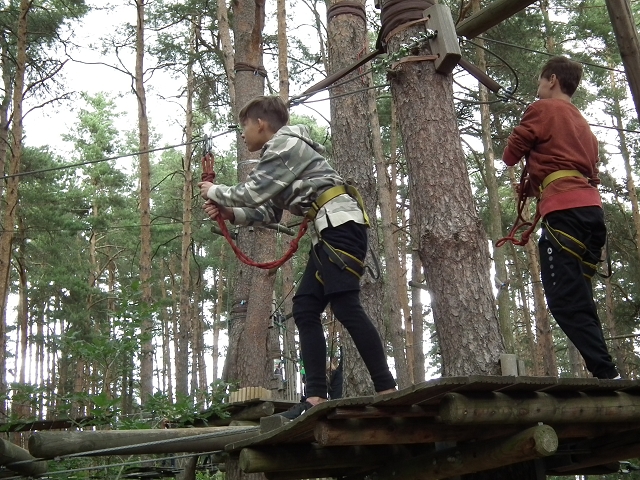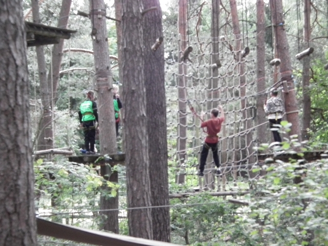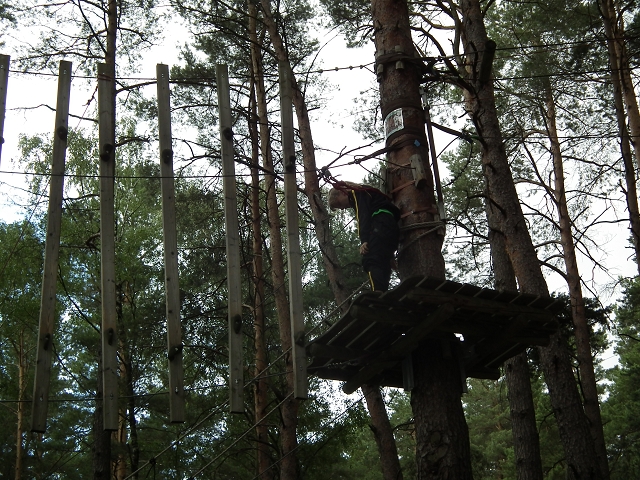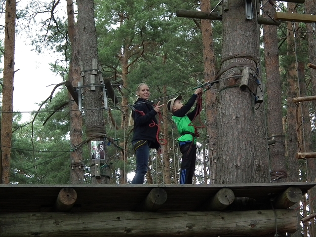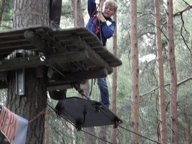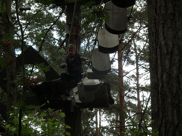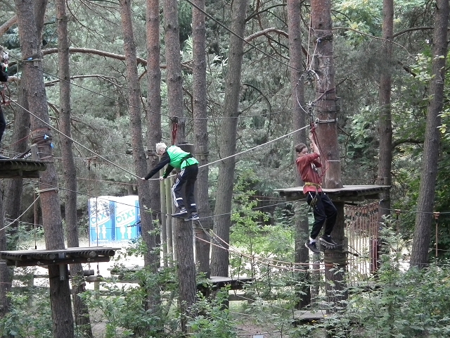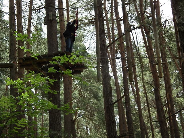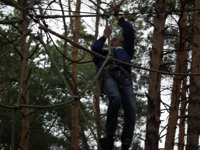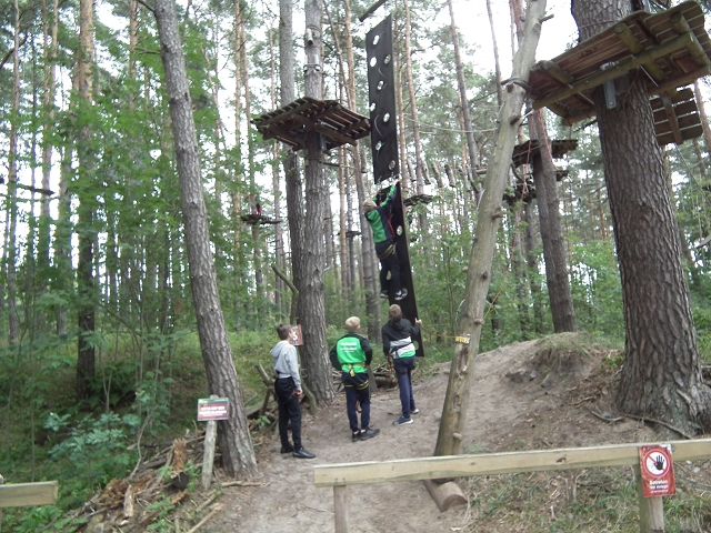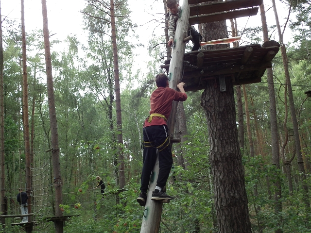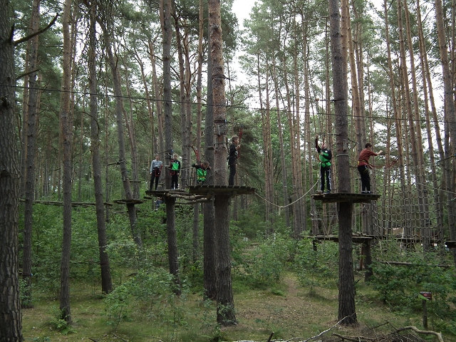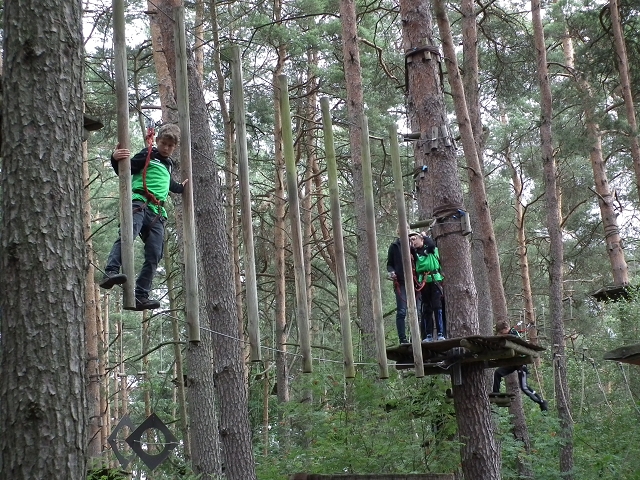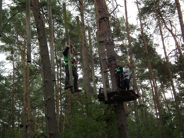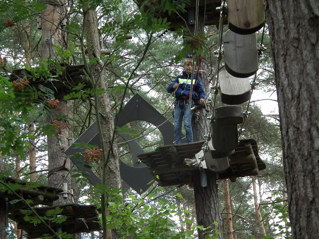 Ziel war heute der Kletterwald in Schorfheide. Zwei Stunden klettern – GEIL ! Unser Küken Tobias – ganz schmerzfrei den 3er Parcours absolviert, ohne Zucken und Jammern – ganz klasse. Auch andere Kinder haben uns mit ihren Leistungen angenehm überrascht. Zu nennen wäre da unter anderem: der Eine und die Andere. Die Andere deshalb, weil wir auch sehr viel Frauenpower gesehen haben.