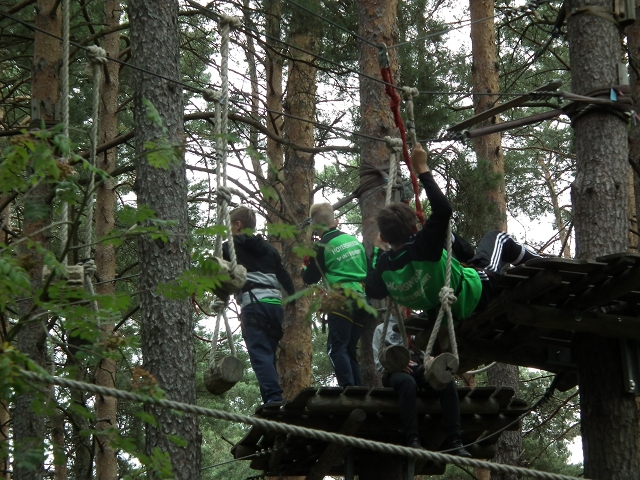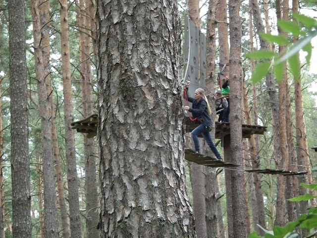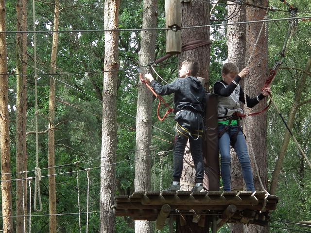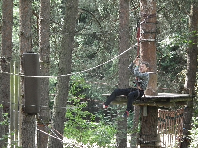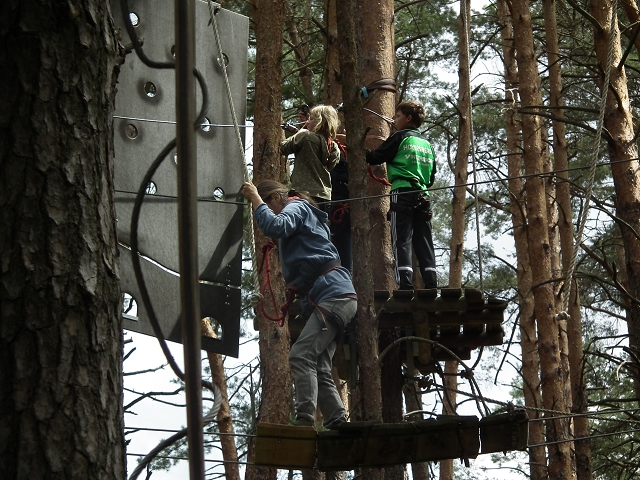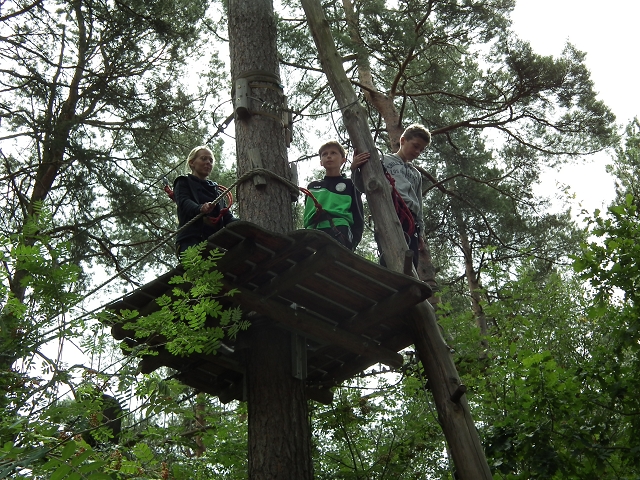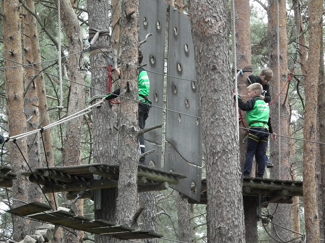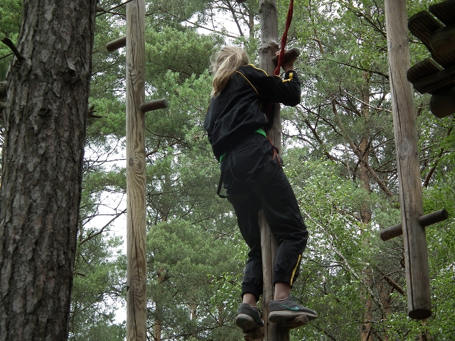 Ziel war heute der Kletterwald in Schorfheide. Zwei Stunden klettern – GEIL ! Unser Küken Tobias – ganz schmerzfrei den 3er Parcours absolviert, ohne Zucken und Jammern – ganz klasse. Auch andere Kinder haben uns mit ihren Leistungen angenehm überrascht. Zu nennen wäre da unter anderem: der Eine und die Andere. Die Andere deshalb, weil wir auch sehr viel Frauenpower gesehen haben.