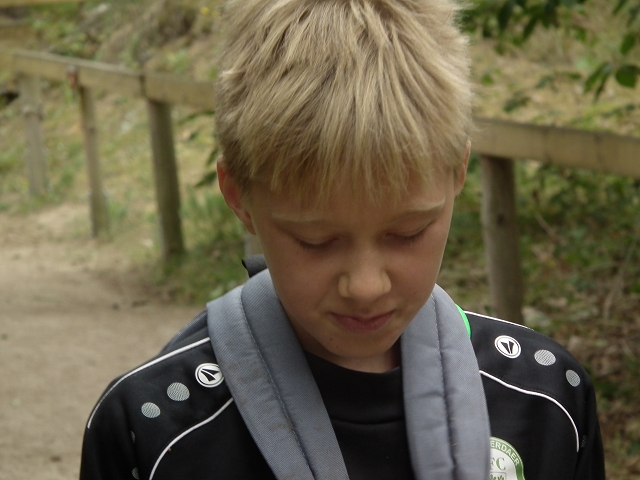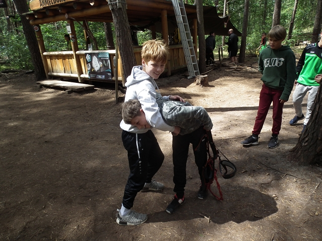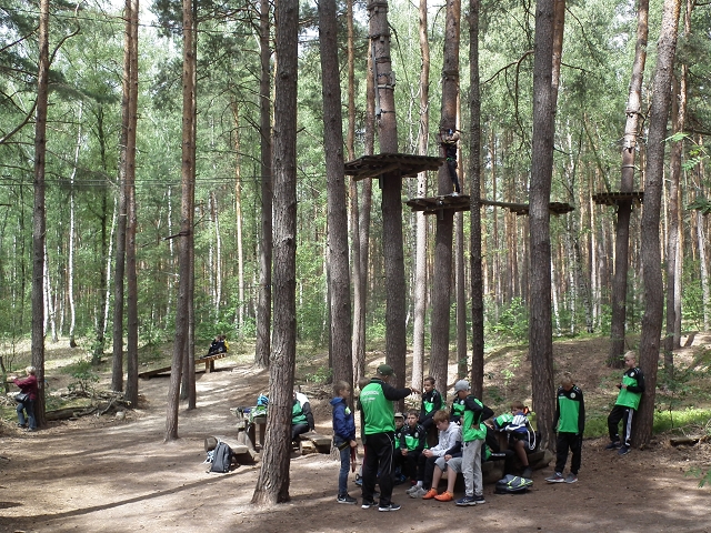 Rückfahrt führte uns wie jedes Jahr an einen etwas größeren Einkaufsmarkt, dessen Namen aus markenrechtlichen Gründen nicht genannt werden kann, vorbei. Vollbremsung, alle raus, Süßigkeitsregal geplündert, Chef des Marktes glücklich. Nun wieder rein in Bus, nächsten Stop in Wandlitz zum Essen. Bis alle satt waren brauchten wir 1,5h. Es ist auch nicht so einfach für die Besitzer eines Dönerstandes allen Wünschen der Kinder gerecht zu werden. Ein Spieler hatte sich im Kletterwald so verausgabt, dass er sich ein ganzes Hähnchen bestellte. Zu unserem Erstaunen war dieses Federtier nach etwa 20 Minuten Geschichte.