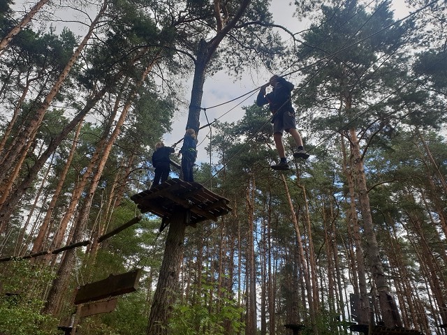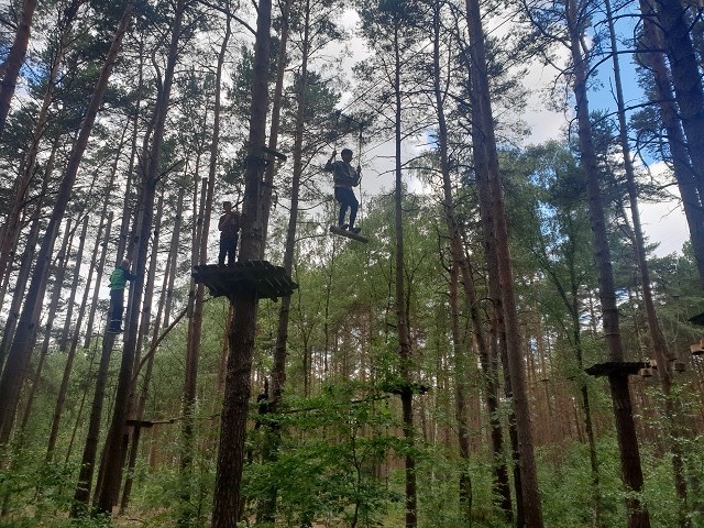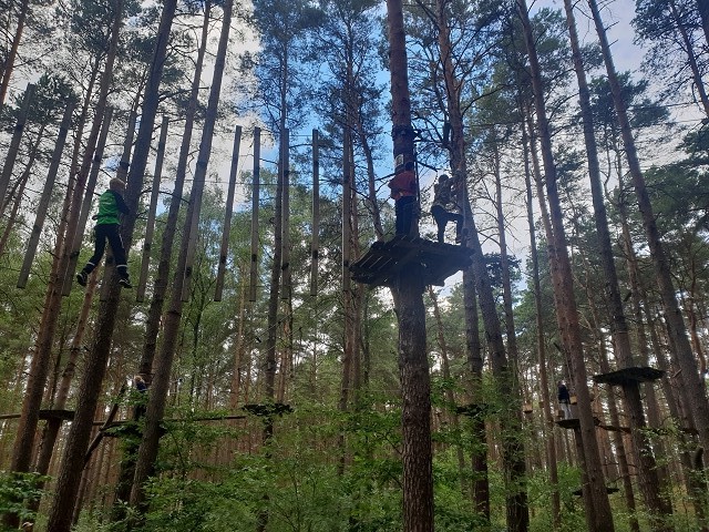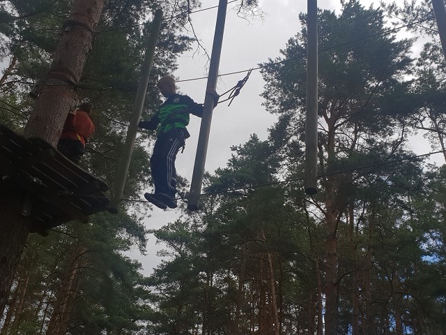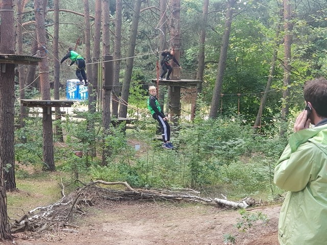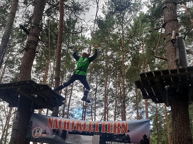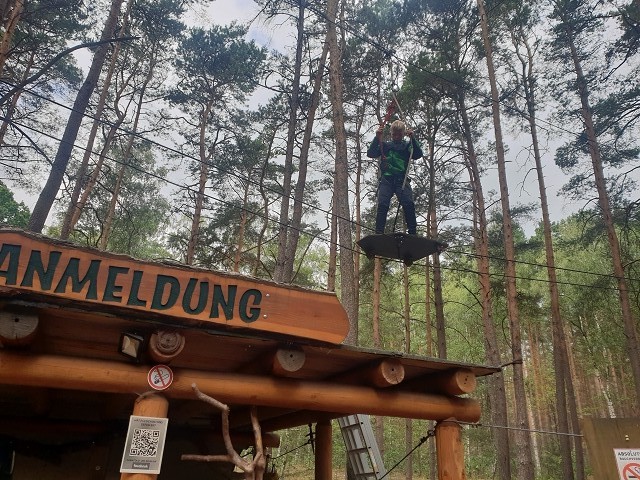 Ziel war heute der Kletterwald in Schorfheide. Zwei Stunden klettern – GEIL ! Unser Küken Tobias – ganz schmerzfrei den 3er Parcours absolviert, ohne Zucken und Jammern – ganz klasse. Auch andere Kinder haben uns mit ihren Leistungen angenehm überrascht. Zu nennen wäre da unter anderem: der Eine und die Andere. Die Andere deshalb, weil wir auch sehr viel Frauenpower gesehen haben.